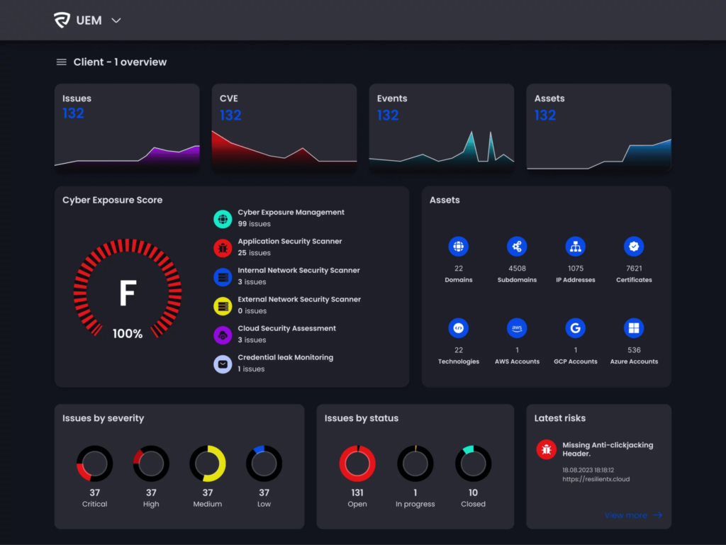 ResilientX is designed to provide comprehensive cybersecurity management and risk mitigation. Unified Exposure Management provides real-time visibility and proactive risk assessment across all digital assets, while Third-Party Risk Management provides close oversight and control of third-party security practices.
